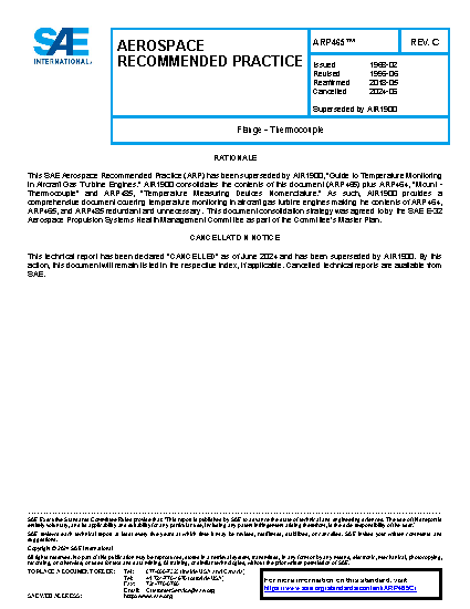 This SAE Aerospace Recommended Practice (ARP) provides guidance for the design of flanges on temperature sensors intended for use in gas turbine engines. Three figures detail the configuration of standard size flange mounts with bolt holes, slotted flanges, and miniaturized flanges for small probes.
