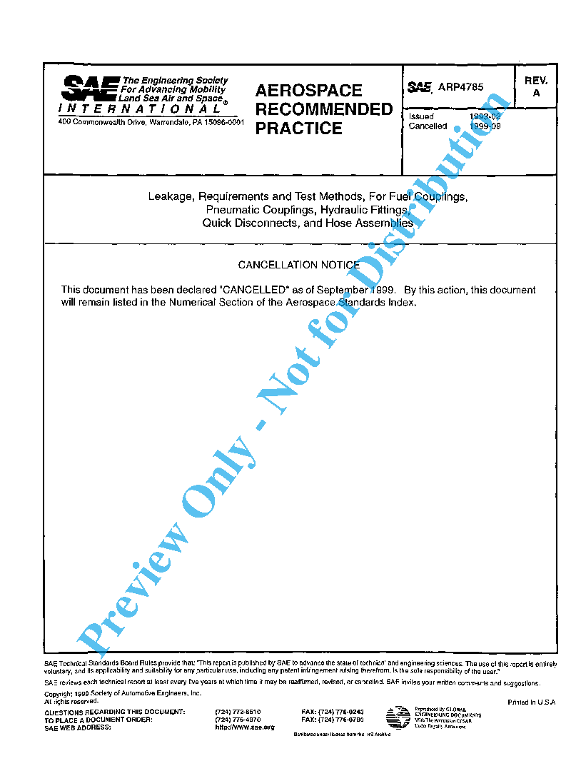 Leakage, Requirements and Test Methods, for Fuel Couplings, Pneumatic Couplings, Hydraulic Fittings, Quick Disconnects, and Hose Assemblies