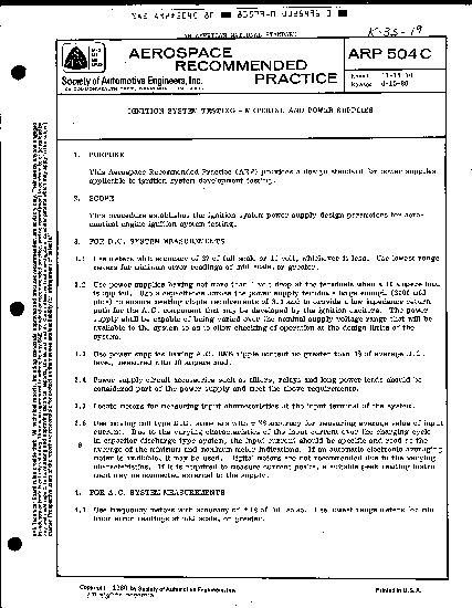 This procedure establishes the ignition system power supply design parameters for aeronautical engine ignition system testing.