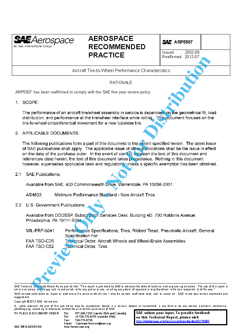 The performance of an aircraft tire/wheel assembly in service is dependent on the geometrical fit, load distribution, and performance at the tire/wheel interface while rolling. This document focuses on the tire-to-wheel circumferential movement for a new tubeless tire.