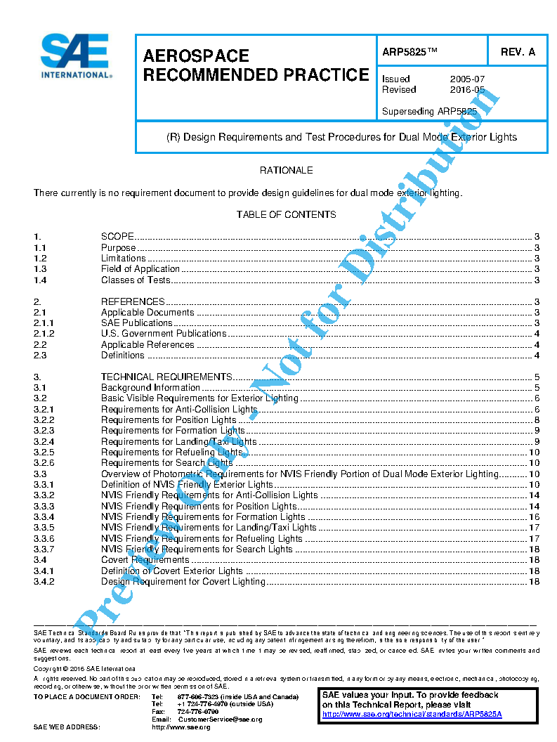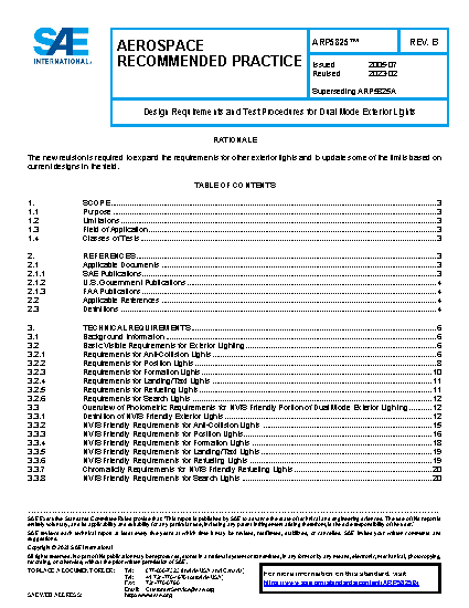This SAE Aerospace Recommended Practice (ARP) contains the general requirements and test procedures for Dual Mode (NVIS Friendly visible and Covert) exterior lighting for most rotorcraft and fixed wing aircraft and could be applicable to ground vehicles that desire a Dual Mode lighting system.