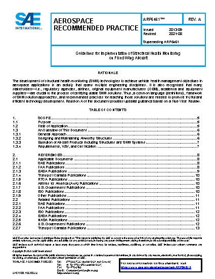 This document is applicable to civil aerospace airframe structural applications where stakeholders are seeking guidance on the definition, development and certification of Structural Health Monitoring (SHM) technologies for aircraft health management applications.