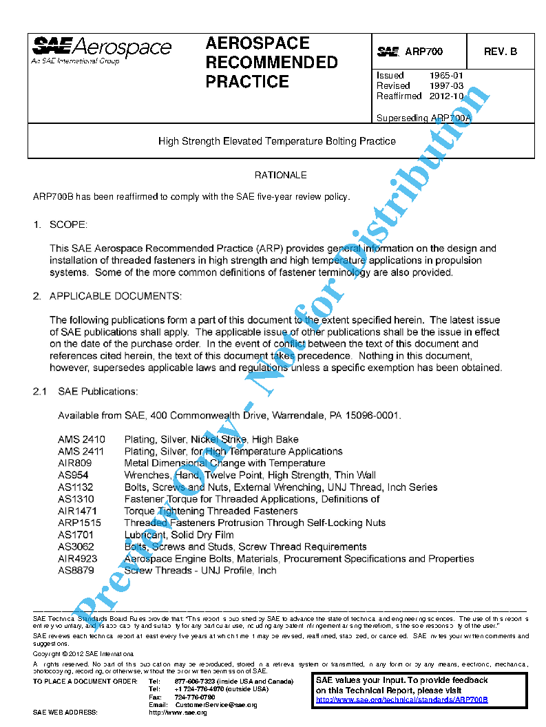 SAE ARP 700B:2018-08-23