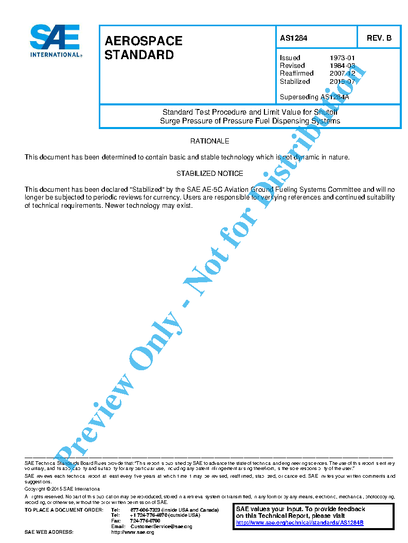 Standard Test Procedure and Limit Value for Shutoff Surge Pressure of Pressure Fuel Dispensing Systems (Stabilized: Jul 2015)