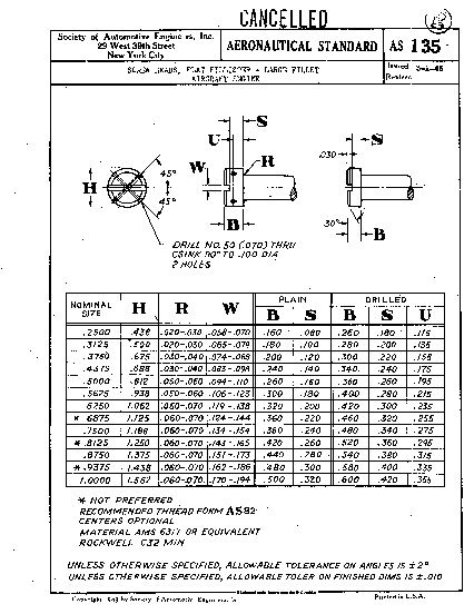 Screw Heads, Flat Fillister - Large Fillet Aircraft Engine