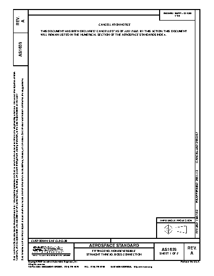 This document is a design standard and is not to be used as a part number. The fitting end described within this standard is part of a non-reversible series described in SAE/AS 1856.