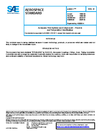 Aerospace Fluid Systems and Components – Pressure and Temperature Classifications