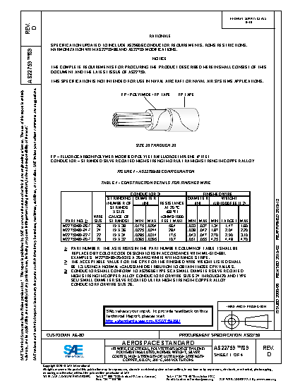 SPECIFICATION UPDATED TO INCLUDE AS29606 CONDUCTOR REQUIREMENTS, ROHS RESTRICTIONS, HARMONIZATION WITH AS22759/86 AND AS22759 MODIFICATIONS.