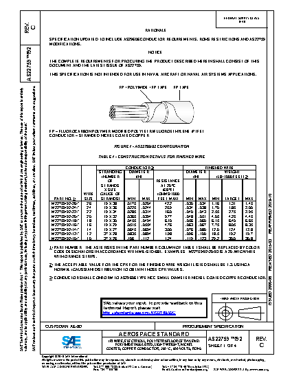 SPECIFICATION UPDATED TO INCLUDE AS29606 CONDUCTOR REQUIREMENTS, ROHS RESTRICTIONS AND AS22759 MODIFICATIONS.