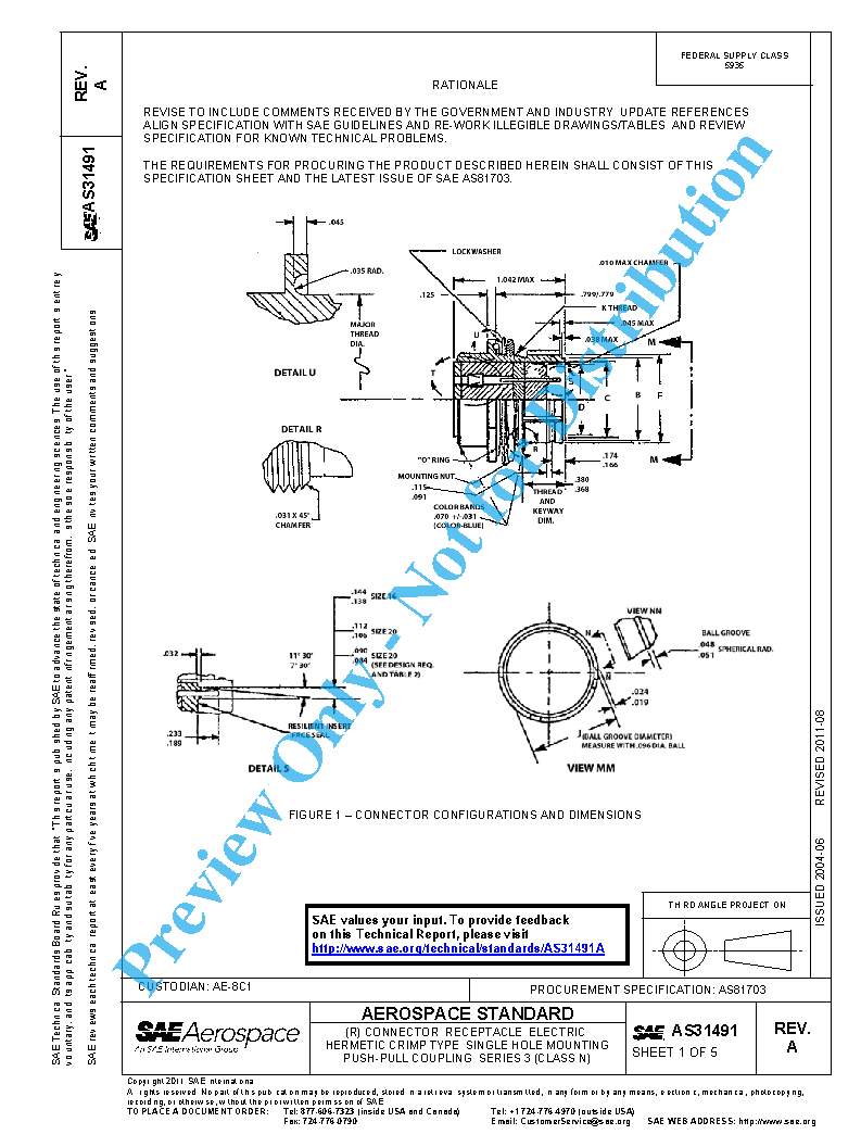 AS31491A HAS BEEN REAFFIRMED TO COMPLY WITH THE SAE FIVE-YEAR REVIEW POLICY.