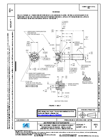 DELETE RADIUS AT TRANSITION OF WRENCH FLATS AND BASE FLANGE, REVISE LEAD IN CHAMFER TO CONFORM TO AS1132, ADD NEW INVENTORY DISPOSITION NOTE, UPDATE FPI REQUIREMENTS, UPDATE REFERENCES, GENERAL EDITORIAL UPDATE TO FIGURE 1.