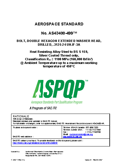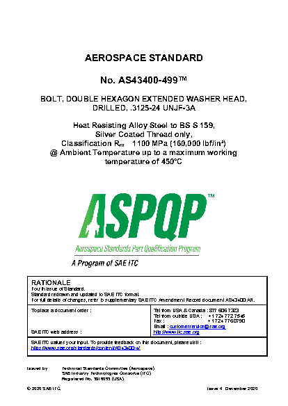 AS43400-499 Bolt, Machine, Double Hexagon Extended Washer Head, Drilled, BS S159, Silver Coated, .3125 - 24 UNJF - 3A.BS4084