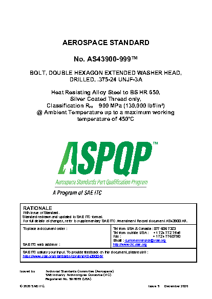 AS43900-999 Bolt, Machine, Double Hexagon Extended Washer Head, Drilled, BS.HR650, Silver Coated, .375 - 24UNJF - 3A.BS4084