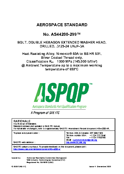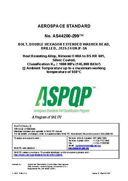 AS44200-299 Bolt, Machine, Double Hexagon Extended Washer Head, Drilled, BS. HR601, Silver Coated, .3125 - 24UNJF - 3A.BS4084