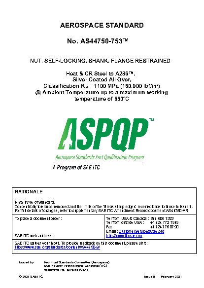 AS44750-753AR Amendment Record for Drawing Standard No. AS44750-753