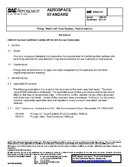 This SAE Aerospace Standard (AS) establishes the requirements for fluid fittings that combine both weld fitting end and 24° cone flareless fitting end connections for use in all types of fluid systems.