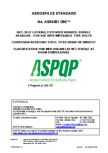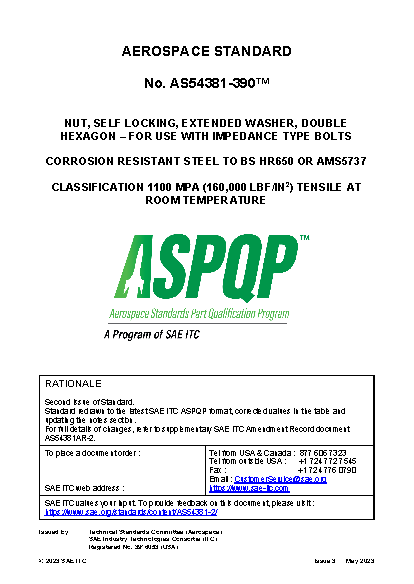 AS54381-390 Nut, Self Locking, Extended Washer, Double Hexagon - for Use with Impedance Type Bolts