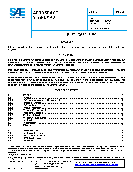 Time-Triggered Ethernet supports the design of communication systems with mixed time criticality in which several applications of mixed time criticality share a single physical network. In particular, an Ethernet network can be used to transfer frames in a time-triggered mode (synchronous communication) and non-time-triggered modes (asynchronous communication as for example Ethernet frames transmitted according to the best-effort strategy). The Time-Triggered Ethernet synchronization strategy inherently compensates for latency and jitter resulting from this integration and ensures high-quality synchronization despite increased network latency and jitter. Synchronized time provides the foundation for partitioning and isolation of critical applications from the less critical or non-critical ones.