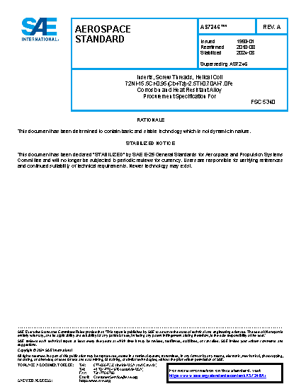 Inserts, Screw Threads, Helical Coil 72Ni-15.5Cr-0.95(Cb+Ta)-2.5Ti-0.70Al-7.0Fe Corrosion and Heat Resistant Alloy Procurement Specification For
