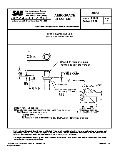 SPARK IGNITER OUTLINE .750-20 THREAD MOUNTING