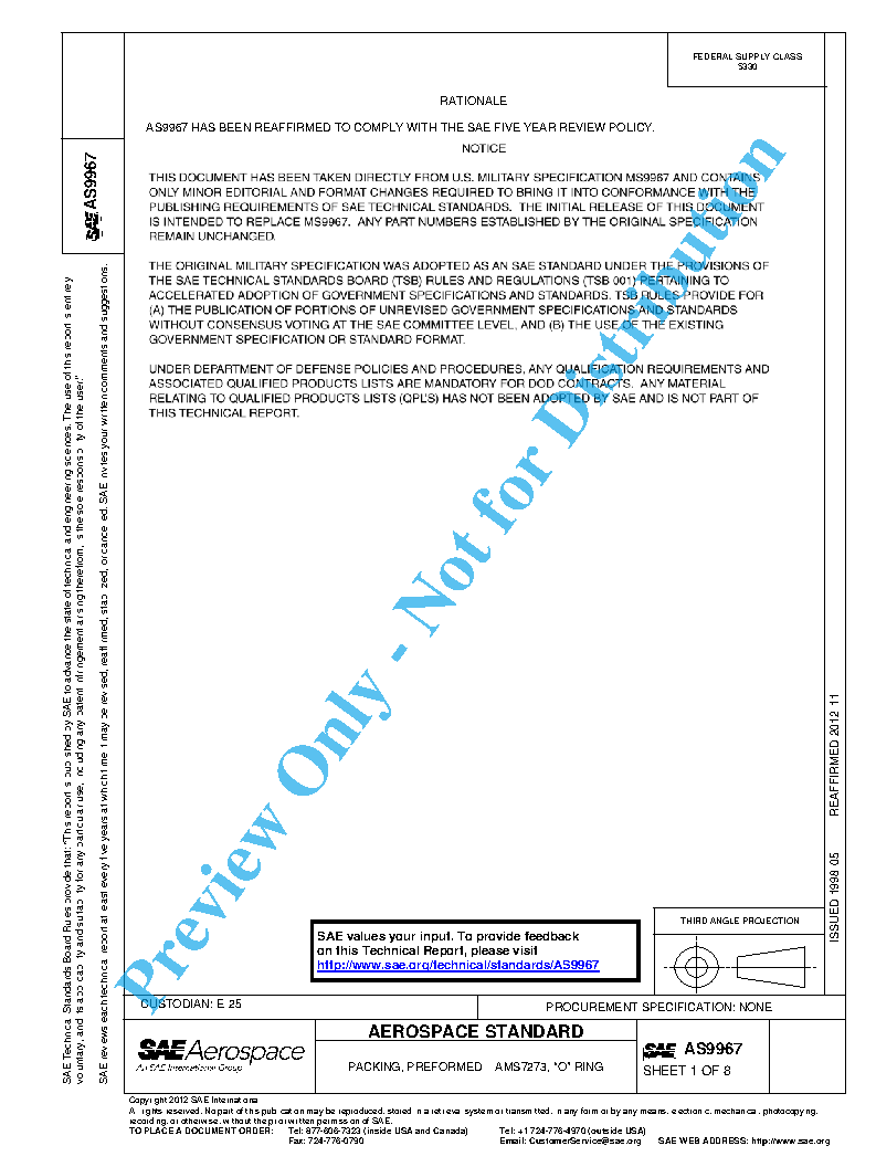 This standard establishes the dimensional and visual quality requirements, lot requirements, and packaging and labeling requirements for O-rings molded from AMS7273 rubber. It shall be used for procurement purposes.
