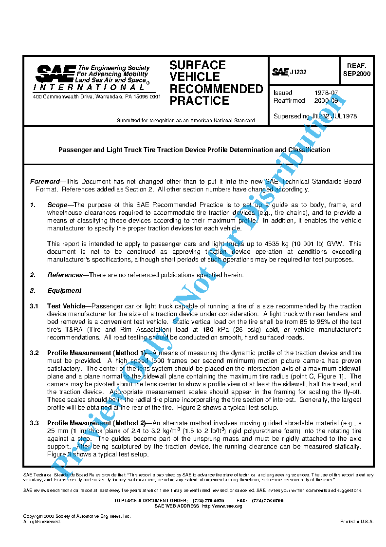 This report is intended to apply to passenger cars and light trucks up to 4535 kg (10 001 lb) GVW. This document is not to be construed as approving traction device operation at conditions exceeding manufacturer's specifications, although short periods of such operations may be required for test purposes.