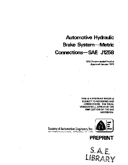 AUTOMOTIVE HYDRAULIC BRAKE SYSTEM—METRIC CONNECTIONS