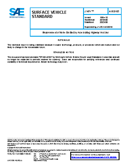 This SAE Standard is equivalent to ISO Standard 362 - 1997 except for the differences detailed in Appendix A, and includes the modifications adopted by WP 29 in ECE R51 Revision 1 and EEC 92/97 and EEC 96/20.