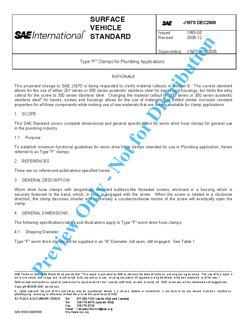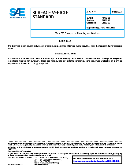This SAE Standard covers complete dimensional and general specifications for worm drive hose clamps for general use in the plumbing industry.