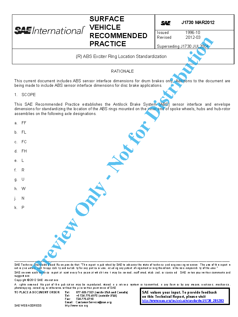 This SAE Recommended Practice establishes the Antilock Brake System [ABS] sensor interface and envelope dimensions for standardizing the location of the ABS rings mounted on the inner end of spoke wheels, hubs and hub-rotor assemblies on the following axle designations.