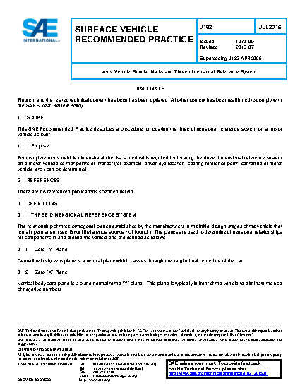 This SAE Recommended Practice describes a procedure for locating the three-dimensional reference system on a motor vehicle as built.