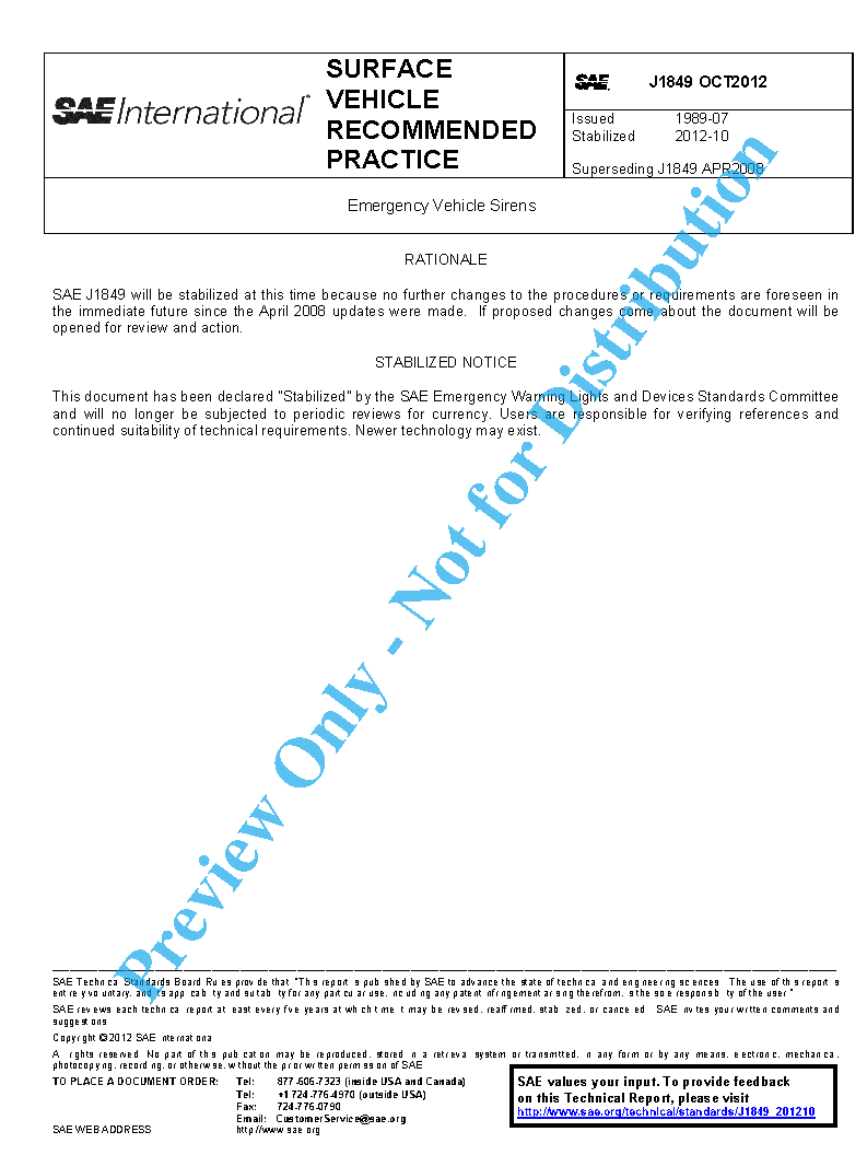 This SAE Recommended Practice provides laboratory test procedures, requirements and guidelines for electronic siren systems with a single loudspeaker, and electromechanical sirens for use on authorized emergency vehicles, which call for the right-of-way. Test procedures and performance requirements for individual system components are not included in this version. Results obtained for a siren system with a speaker array that is greater than 0.5 m in any dimension shall apply to the system only when the array is in the same spatial configuration as tested (i.e., the same speaker separation and orientation).