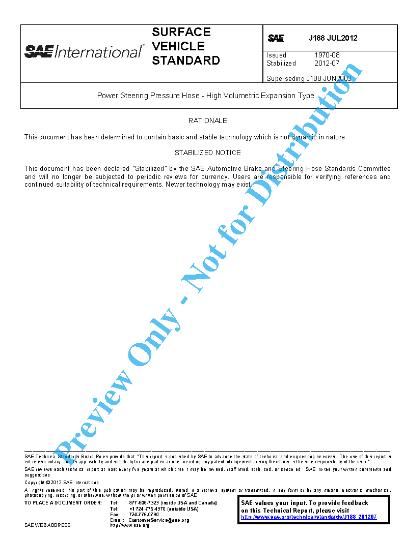 This document covers two types of hose fabricated from fabric braid and synthetic rubber, assembled with end fittings for use in automotive power steering applications as flexible connections within the temperature range of -40 °C to +120 °C (-40 °F to +250 °F) average, and 135 °C (275 °F) maximum peaks.