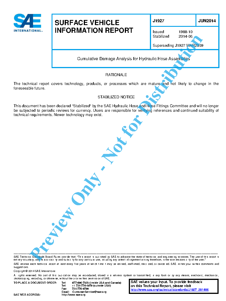 Cumulative Damage Analysis for Hydraulic Hose Assemblies (Stabilized: Jun 2014)