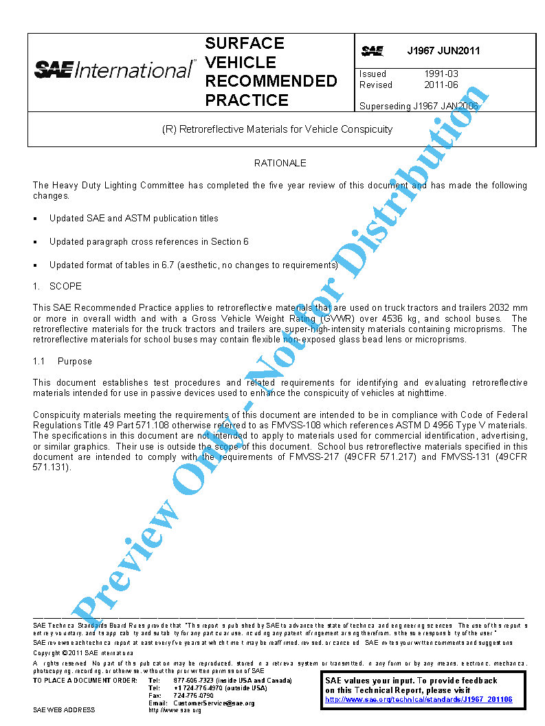 This SAE Recommended Practice applies to retroreflective materials that are used on truck tractors and trailers 2032 mm or more in overall width and with a Gross Vehicle Weight Rating (GVWR) over 4536 kg, and school buses. The retroreflective materials for the truck tractors and trailers are super-high-intensity materials containing microprisms. The retroreflective materials for school buses may contain flexible non-exposed glass bead lens or microprisms.