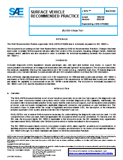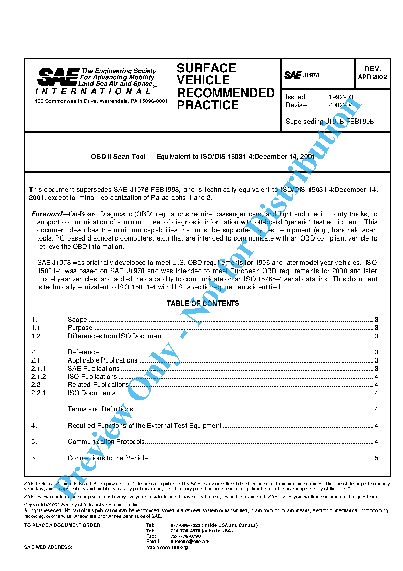 This SAE Recommended Practice supersedes SAE J1978 FEB1998, and is technically equivalent to ISO/DIS 15031-4:December 14, 2001.
