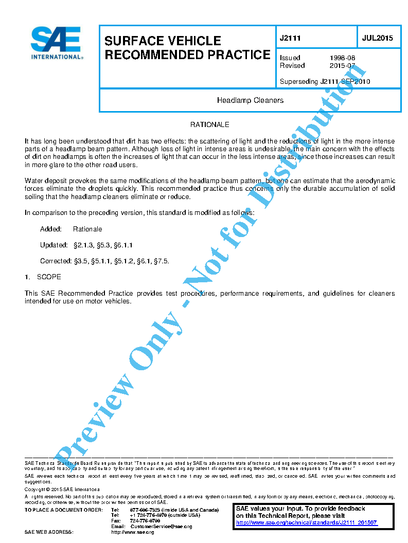 This SAE Recommended Practice provides test procedures, performance requirements, and guidelines for cleaners intended for use on motor vehicles.