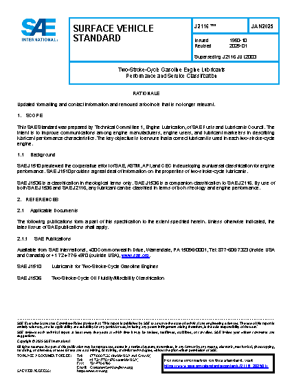 This SAE Standard was prepared by Technical Committee 1, Engine Lubrication, of SAE Fuels and Lubricants Council. The intent is to improve communications among engine manufacturers, engine users, and lubricant marketers in describing lubricant performance characteristics. The key objective is to ensure that a correct lubricant is used in each two-stroke-cycle engine.