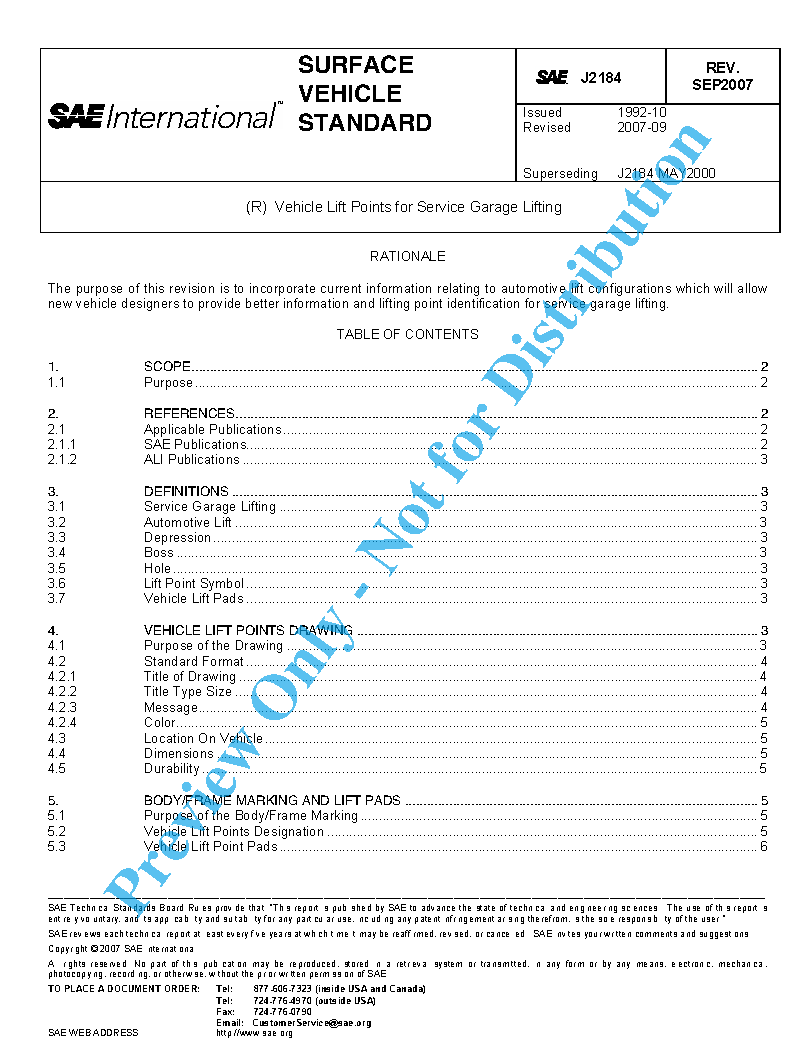 This SAE Standard is directed at the proper communication of the lift points on the vehicle frame or underbody to commercial service personnel for the purpose of raising passenger vehicles, light trucks, and vans completely off the shop floor. To this end, vehicle manufacturers are guided in the proper design of a lift point label and lift points located on the body/frame for use by service garages.