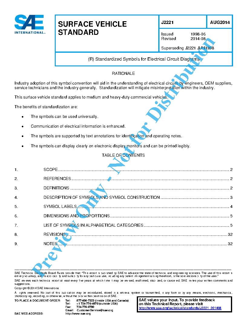 This SAE Recommended Practice identifies graphic symbols used in electrical circuit diagrams. The symbols aid troubleshooting electrical systems.