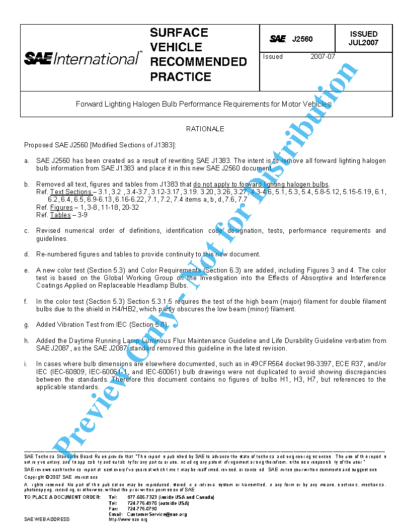 This SAE Recommended Practice is intended as a guide toward standard practice and is subject to change to keep pace with experience and technical advances. This document establishes performance requirements, material requirements, design requirements, and design guidelines for forward lighting halogen replaceable bulbs.