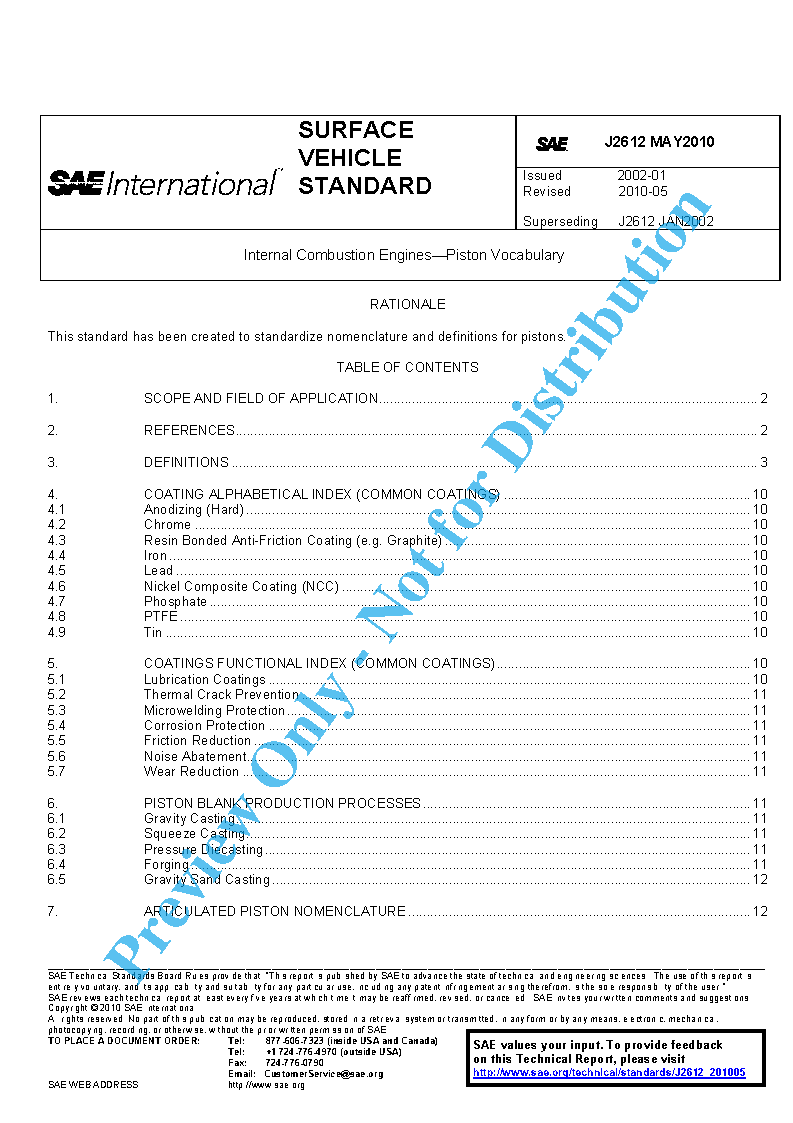 This SAE Standard defines the most commonly used terms for pistons. These terms designate either types of pistons or certain characteristics and phenomena of pistons. The terms and definitions apply to pistons for reciprocating internal combustion engines and compressors working under analogous conditions.