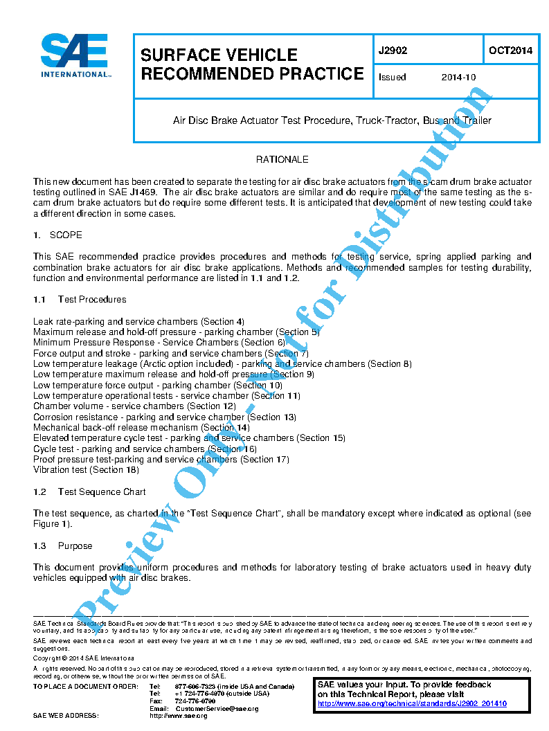 This SAE recommended practice provides procedures and methods for testing service, spring applied parking and combination brake actuators for air disc brake applications. Methods and recommended samples for testing durability, function and environmental performance are listed in 1.1 and 1.2.