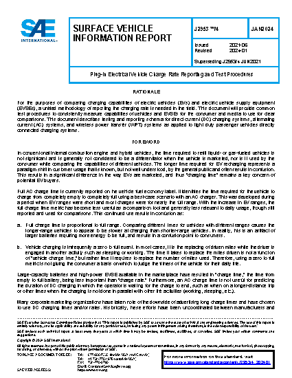 This document facilitates clear and consistent comparisons of realistic charging capabilities of passenger vehicles via commercially available DC EVSE. Common test procedures and metrics are established for both vehicles and EVSEs operating without limitations in nominal conditions. This document does not attempt to address performance variations of EV-EVSE interactions outside of nominal conditions such as extreme temperatures, variable SOCs, and so on.