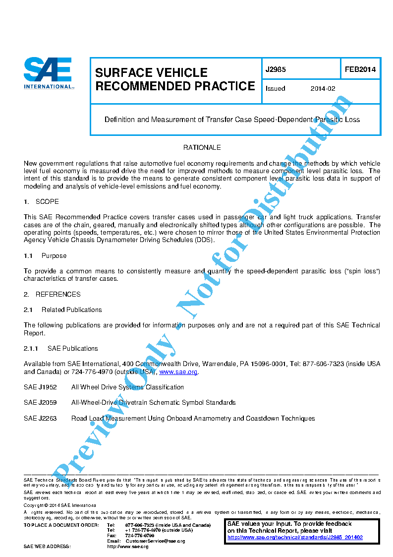 This SAE Recommended Practice covers transfer cases used in passenger car and light truck applications. Transfer cases are of the chain, geared, manually and electronically shifted types although other configurations are possible. The operating points (speeds, temperatures, etc.) were chosen to mirror those of the United States Environmental Protection Agency Vehicle Chassis Dynamometer Driving Schedules (DDS).