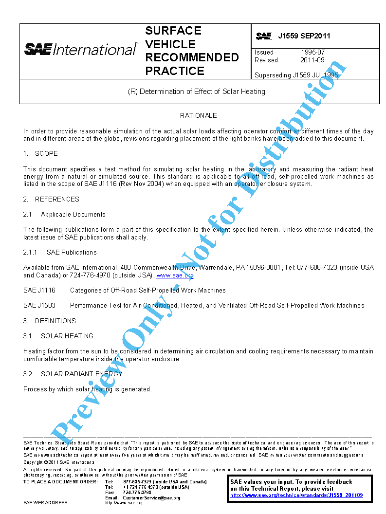 SAE J3078/6 specifies a test method for simulating solar heating in the laboratory and measuring the radiant heat energy from a natural or simulated source. It is applicable to Off-Road Self-Propelled Work Machines as defined in SAE J1116 and Agricultural Tractors as defined in ANSI/ASAE S390.