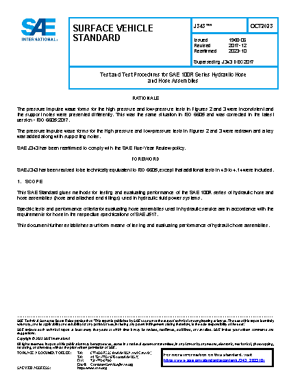 This document further establishes a uniform means of testing and evaluating performance of hydraulic hose assemblies.