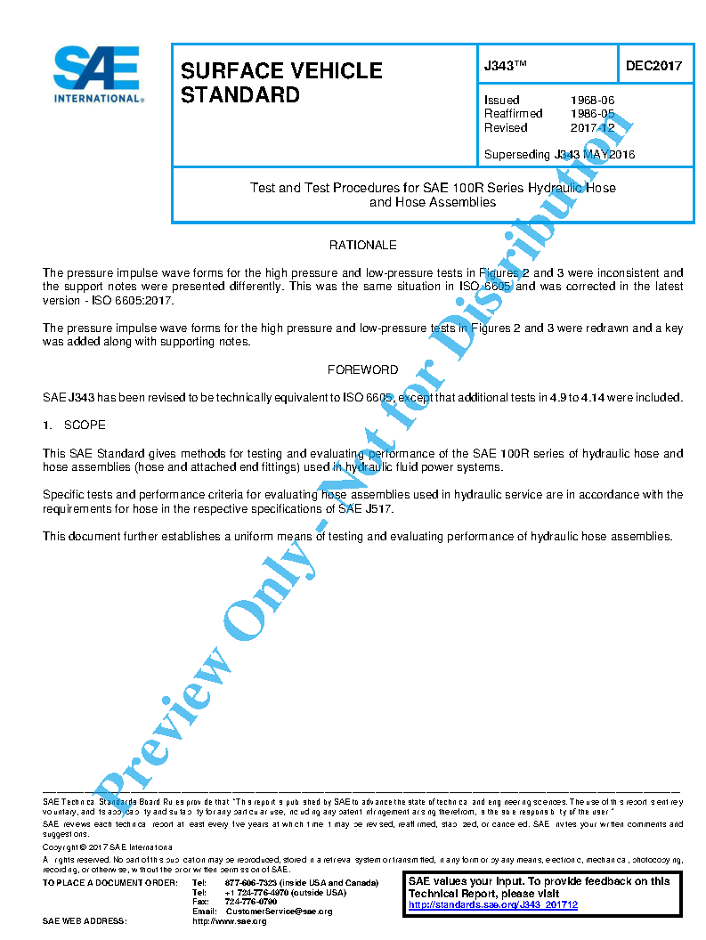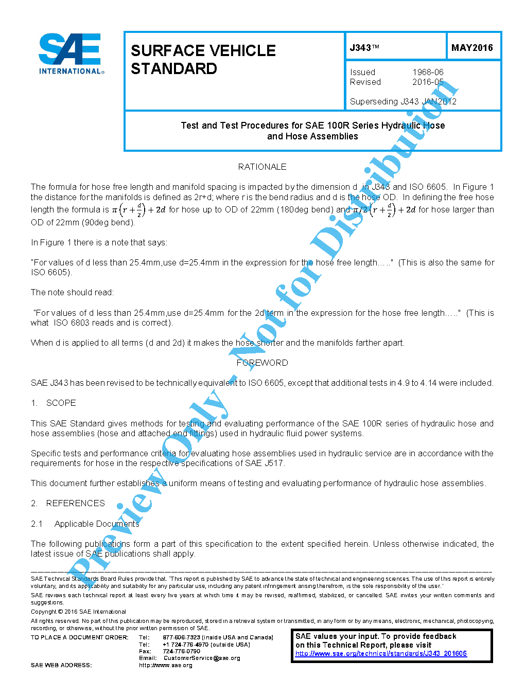Specific tests and performance criteria for evaluating hose assemblies used in hydraulic service are in accordance with the requirements for hose in the respective specifications of SAE J517.