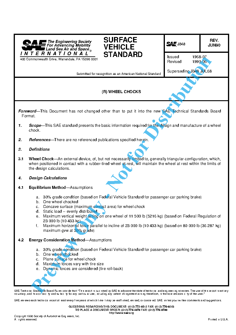 This SAE standard presents the basic information required for the design and manufacture of a wheel chock.