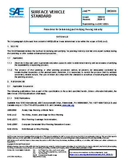 This SAE Recommended Practice Specification provides the procedures for using test strips per SAE J442 for peening processes.